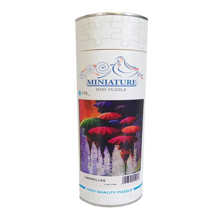 پازل 170 تکه استوانه مینیاتور – طرح چترها یک انتخاب ایدهآل برای عاشقان پازل و علاقهمندان به آثار هنری ظریف و جمعوجور است. این پازل با طراحی منحصربهفرد چترهای رنگارنگ، علاوه بر ایجاد یک چالش ذهنی جذاب، جلوهای هنری و چشمنواز به فضای اتاق یا میز کار شما میبخشد.