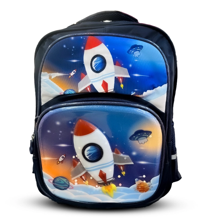 کوله طلقی وارداتی «موشک فضایی» با طراحی شفاف و فانتزی، کیف سبک، مقاوم و مناسب برای مدرسه و استفاده روزمره کودکان است.