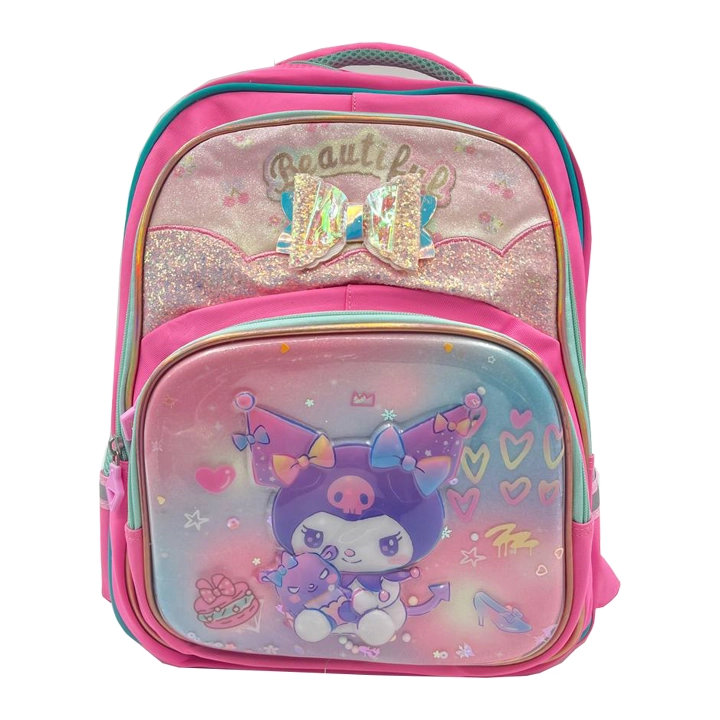 کوله کرومی پاپیونی بچگانه، سبک و بادوام، مناسب مدرسه با طراحی شیک و پاپیونهای جذاب برای دختران.
